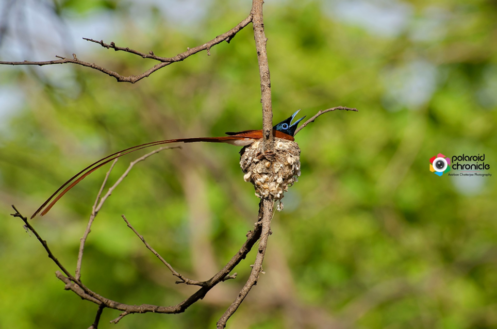Despite the twists of luck on this journey, Tadoba had one final gift to offer—a treasure in feathers. After days of hoping, chasing, and searching, we finally captured the Indian paradise flycatcher, a vision of elegance perched gracefully in her nest. Without the advantage of a high-end zoom lens, landing this shot felt like an achievement in itself. She was a delicate, fleeting beauty etched into memory.